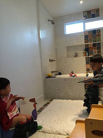 洗內褲時,我仍然坐在旁邊一個指令一個動作,並且手持蓮蓬頭幫他沖內褲,可是他必須自己倒肥皂液自己搓洗。剛開始他當然抗拒許久,不過很快他就懂了這是拉褲子必須承擔的後果,所以倒也相當配合。
